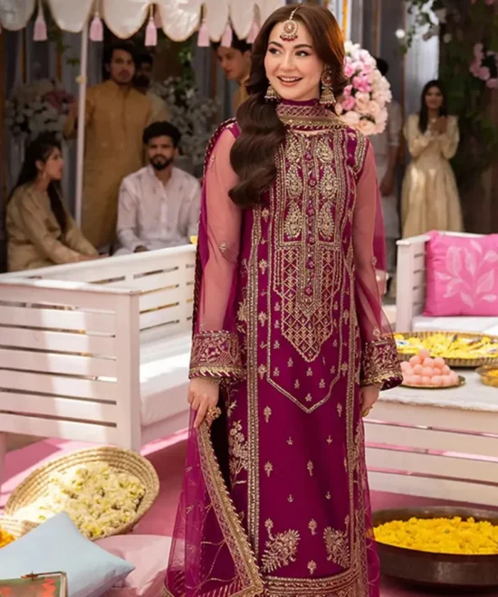 Regal Maroon Net Suit with Heavy Gold Zari and Sequin Work