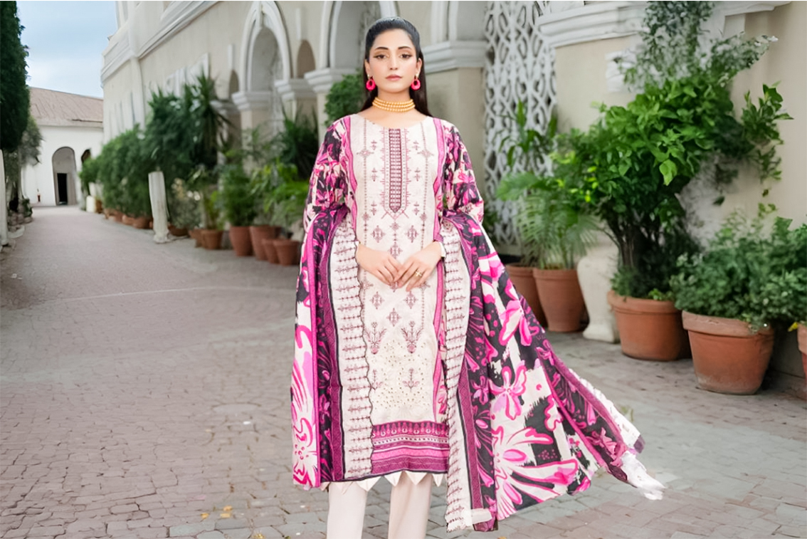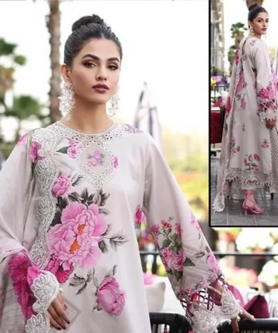Vibrant Purple Floral Print Suit with Fuchsia Heavy Cutwork Embroidery