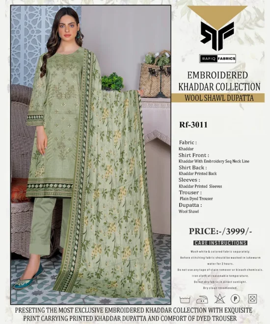 Embroidered Khaddar Suit (Soft Sage)