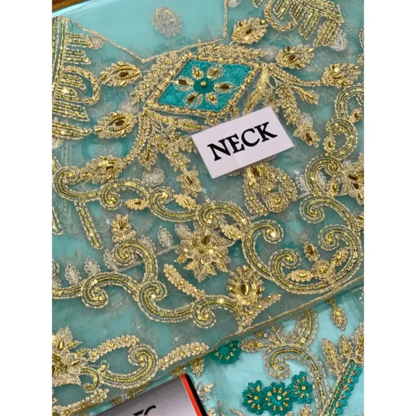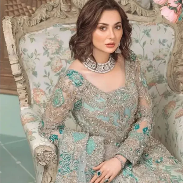 It is paired with a beautifully embroidered dupatta that features a refined 4-sided embroidered border, completing the ensemble. With an approximate length of 60 inches, this maxi offers a graceful, floor-length drape. This is a must-have piece for those seeking a highly detailed, grand attire; however, please note that stock is limited.
