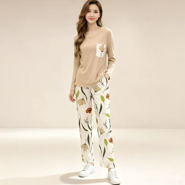 Indulge in supreme comfort with this collection of stylish two-piece pajama sets. Crafted from soft, breathable, and skin-friendly materials, these sets are perfect for a restful night’s sleep or for cozy relaxation around the house. The collection offers a variety of mix-and-match styles, including short-sleeve and long-sleeve tops paired with full-length pants, ensuring comfort throughout the year.